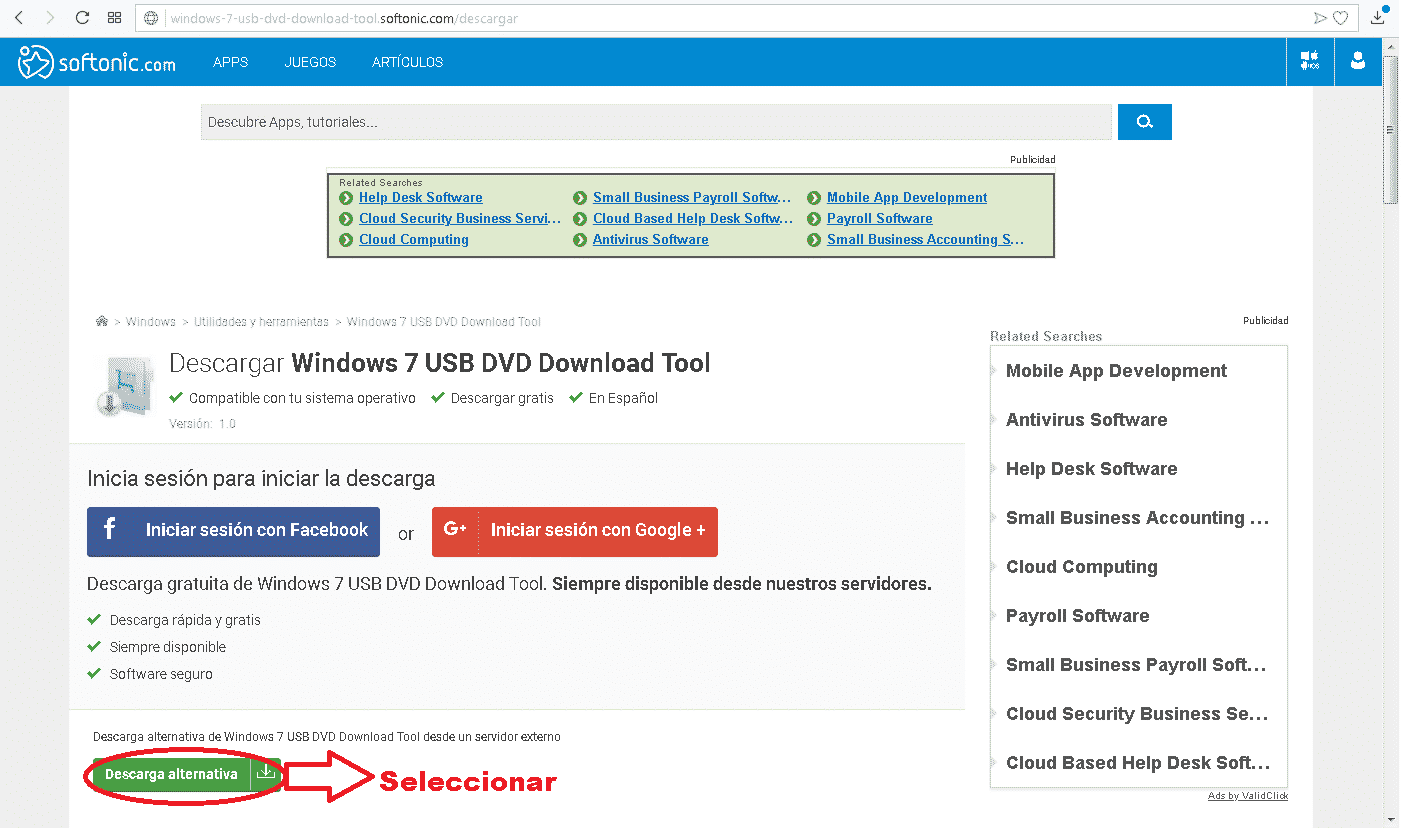 Una vez hayas ingresado a la página señalada, verás varias opciones. Si no quieres iniciar sesión en ninguna de las opciones que te ofrecen, puedes hacer click en ‘Descarga alternativa’.