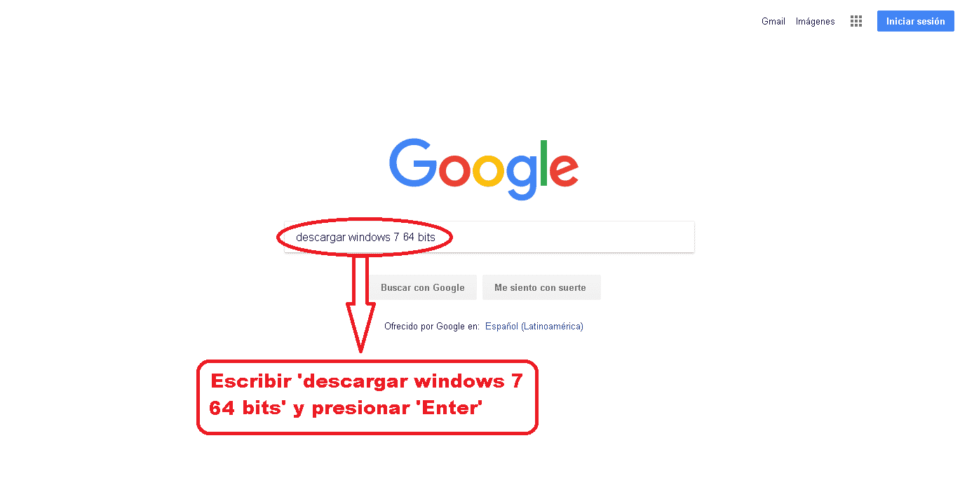 Lo primero que tendrás que hacer para poder descargar Windows 7 64 bits gratis será ingresar a tu navegador. Una vez dentro, podrás escribir en la barra de búsqueda ‘Descargar Windows 7 64 bits’ y presionar la tecla ‘Enter’ para comenzar tu búsqueda.