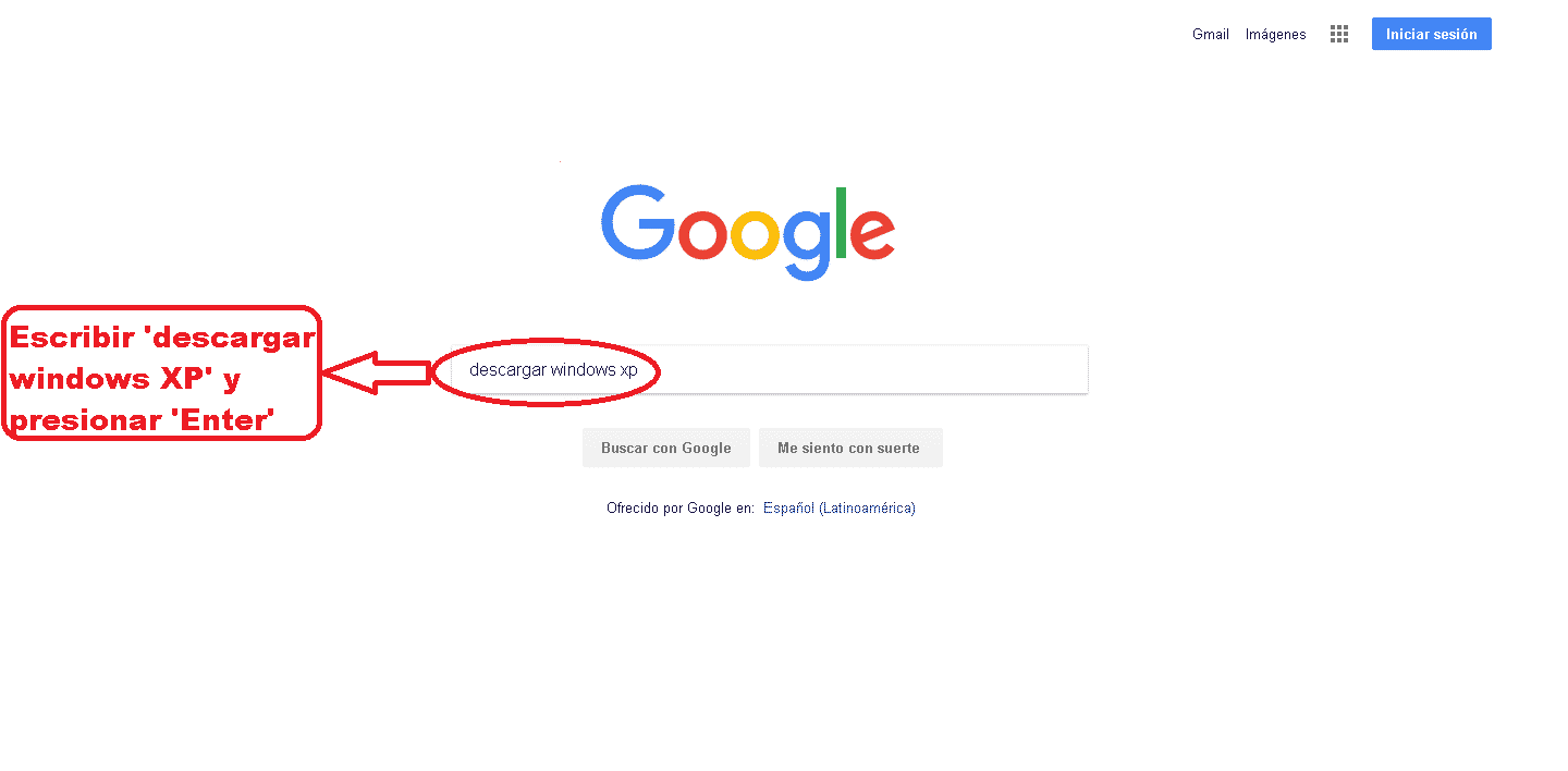 El primer paso para poder descargar Windows XP gratis es ingresar al navegador. Al hacerlo, podremos escribir en la barra de búsqueda ‘Descargar Windows XP’ y presionar la tecla ‘Enter’.